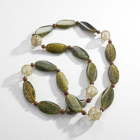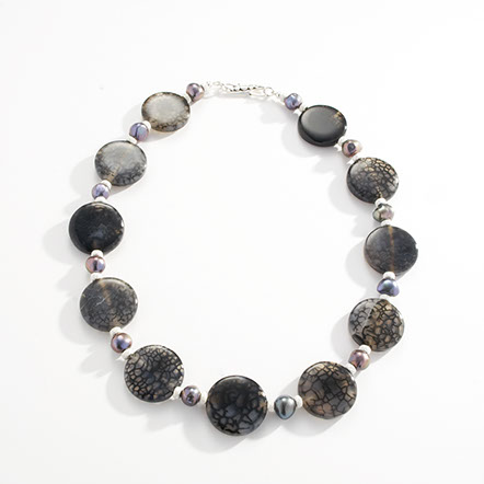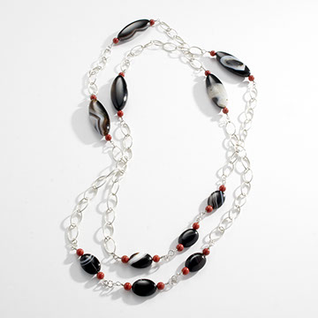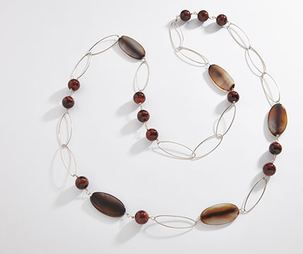 Oval Silver Chain with Agate and Tigers Eye long Necklace